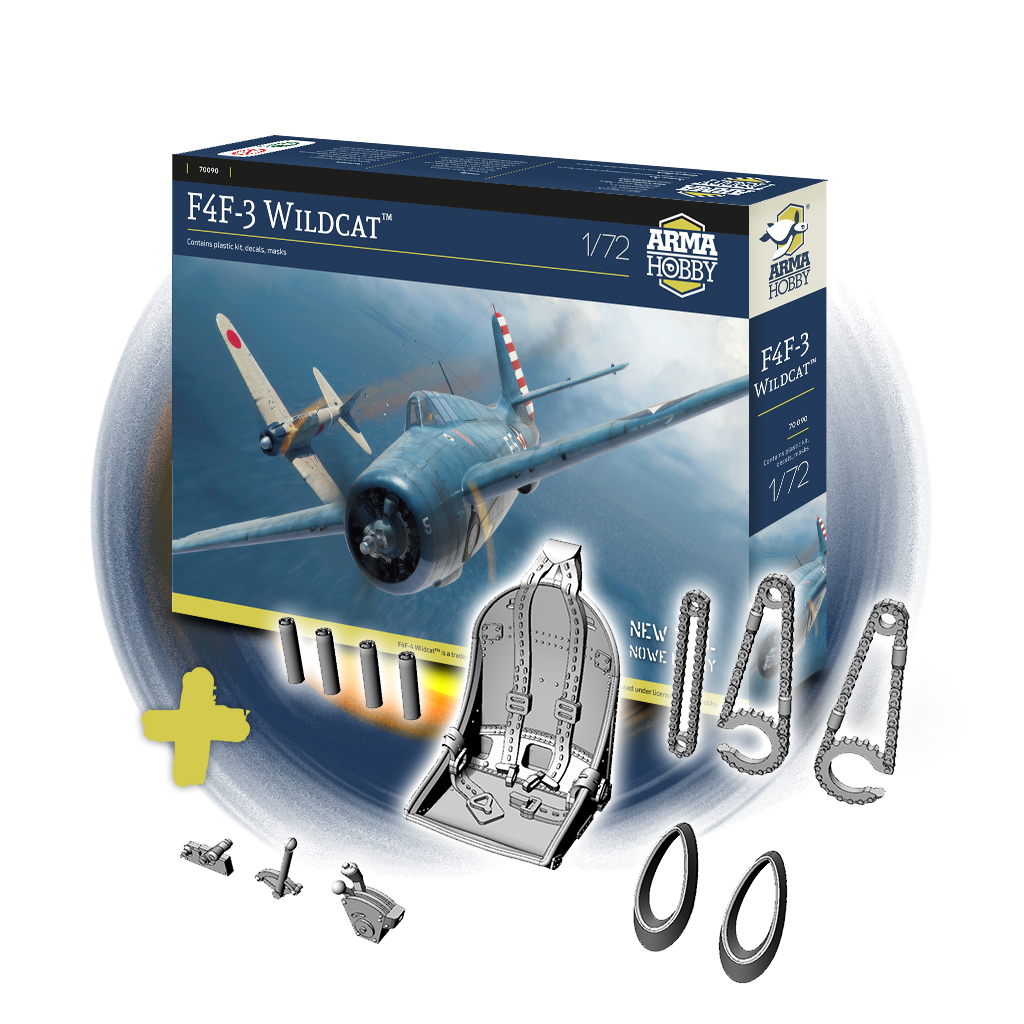 W zestawie znajduje się także nowa osłona kabiny dla każdej wersji tego samolotu, a na tej samej przezroczystej ramce znajdziecie też Arma Jig do Wildcata 1/72.