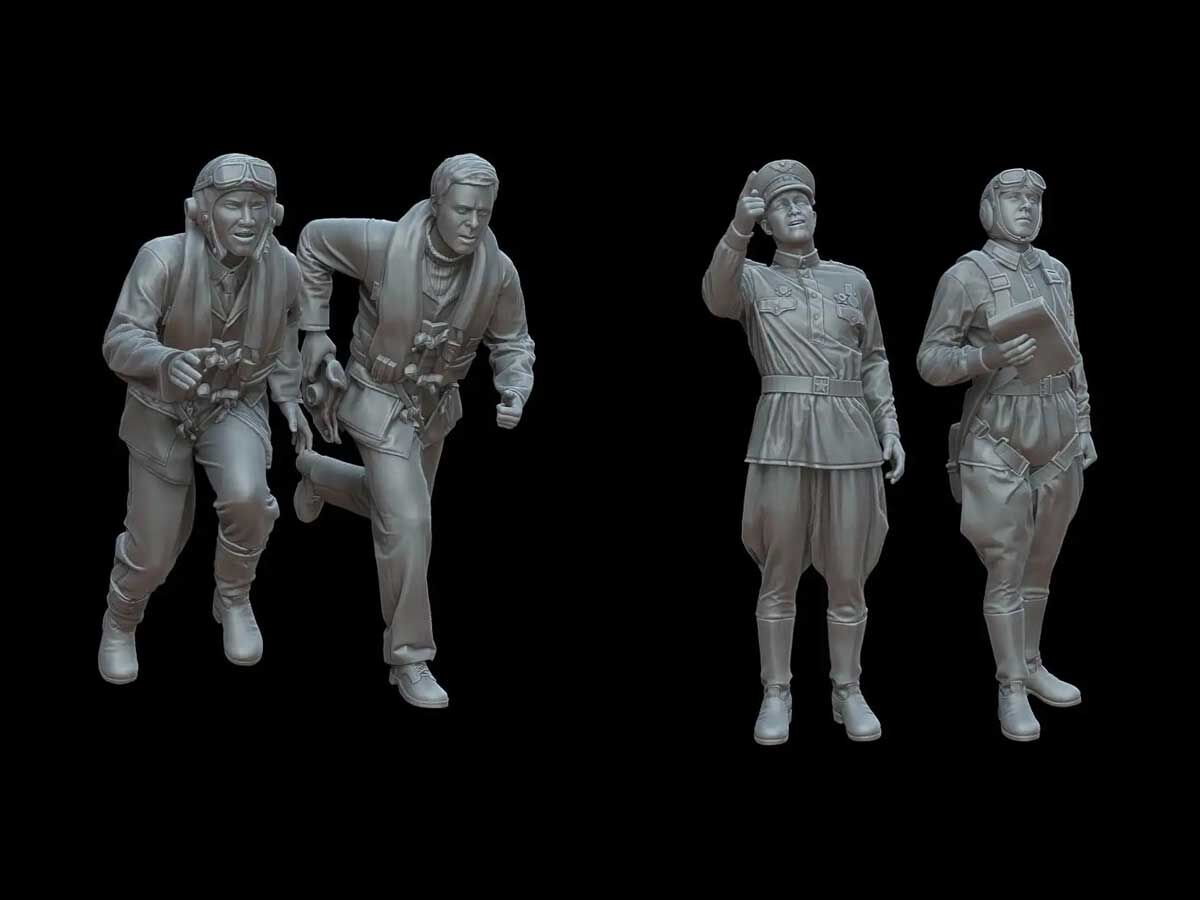 - F48023 ALARM! British Pilots During the Battle of Britain – dynamiczna scena „scramble”, czyli momentu alarmowego startu. Dwie postacie w biegu, pełne napięcia i ruchu – idealne do Hurricane’ów i Spitfire’ów.