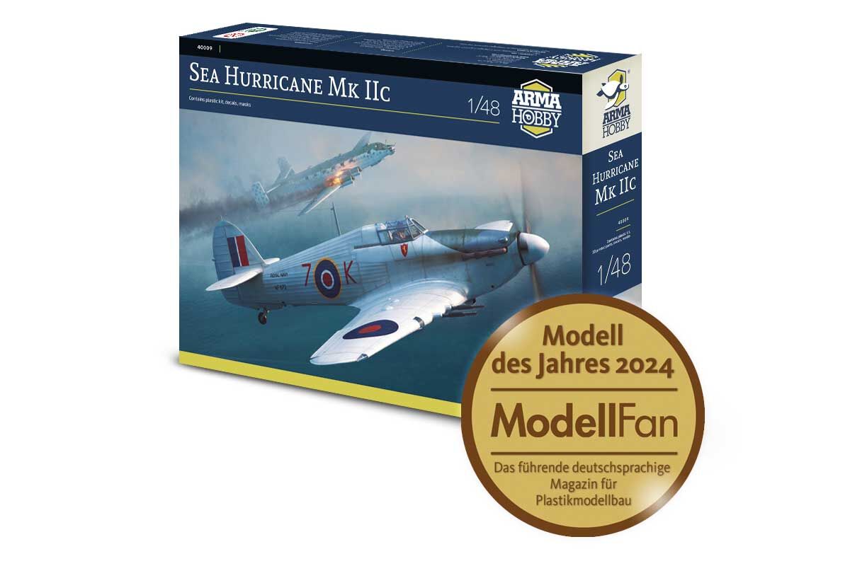 Z okazji nagrodzenia modelu Hurrricane Mk IIb/c w skali 1/48 złotym medalem Model Roku 2024 przez czasopismo Modell Fan, rozpoczynamy przedsprzedaż specjalnego pudełka Hurricane w wersji morskiej.