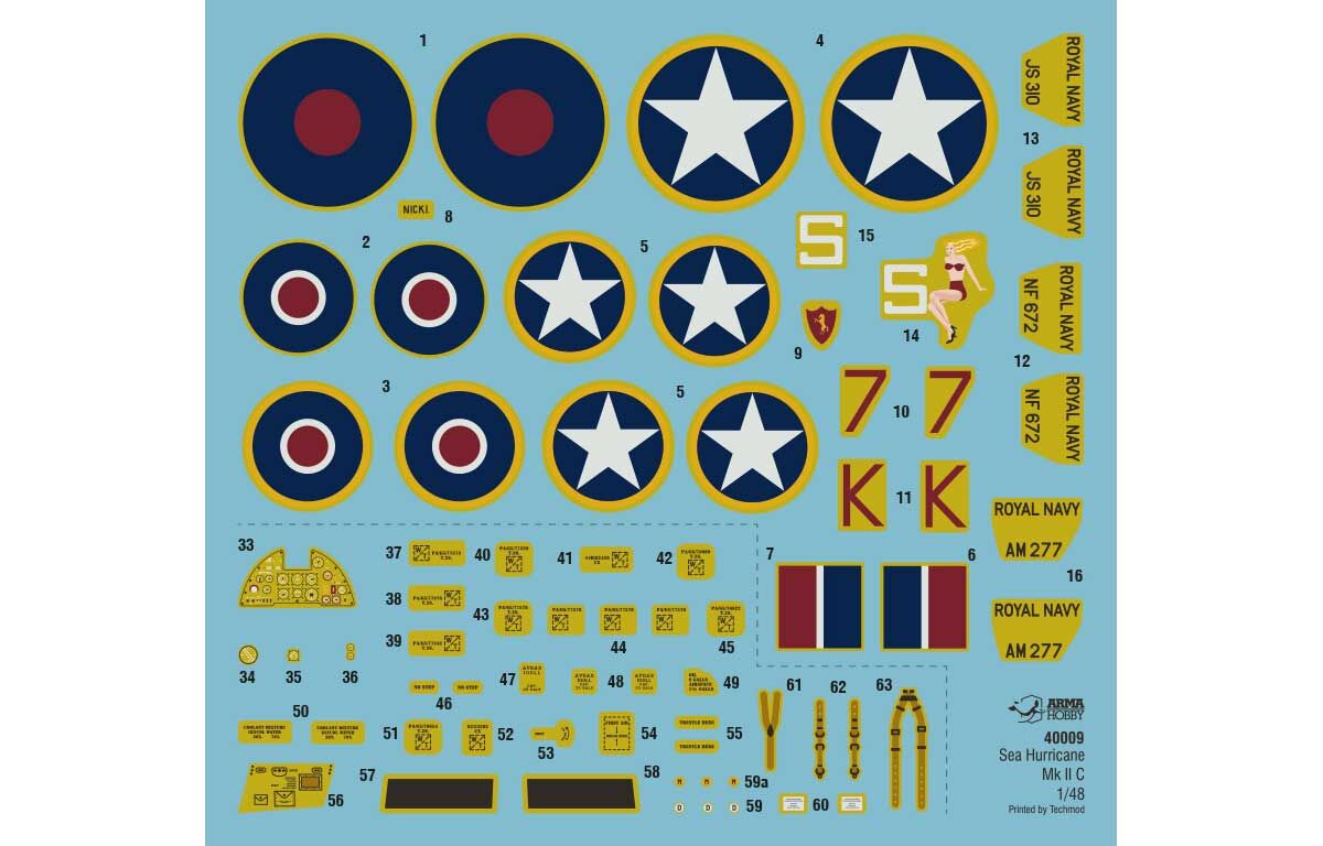 Model zawiera plastikowe części medalowego Hurricane Mk IIc z żywicznymi wydrukami 3D. Zawierają one zespół haka do lądowania na lotniskowcu, fotel z pasami, rury wydechowe i lufy działek 20mm. Wydruki są bezpośrednim zamiennikiem części plastikowych i nie wymagają zmian w modelu (cięcia plastiku).