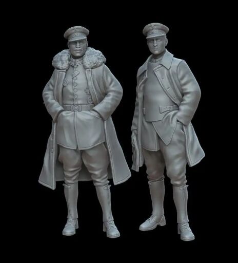 Zestaw figurek w skali 1:72 przedstawia dwóch pilotów niemieckiego lotnictwa wojskowego z okresu I wojny światowej, ukazanych w spokojnych, reprezentacyjnych pozach. Obie postacie noszą charakterystyczne elementy umundurowania lotniczego Cesarstwa Niemieckiego, typowe dla drugiej połowy Wielkiej Wojny.